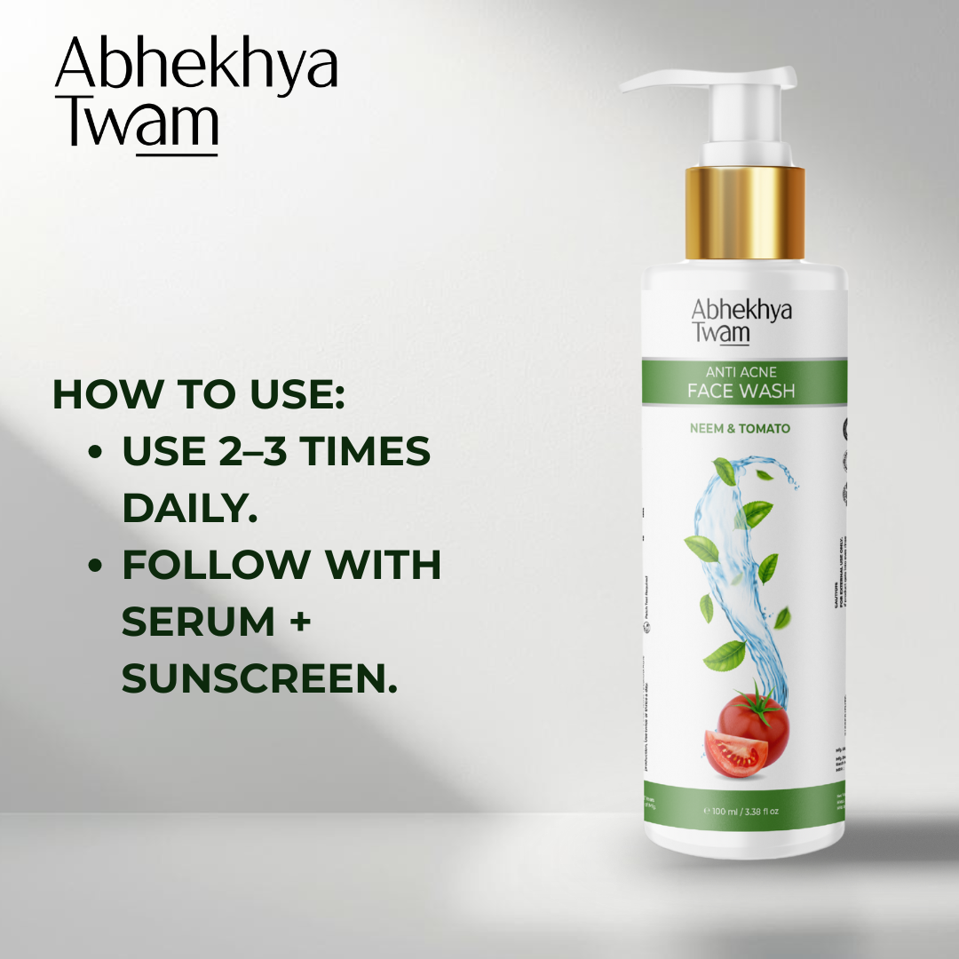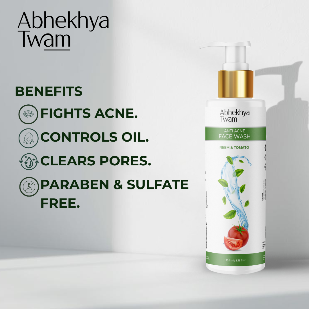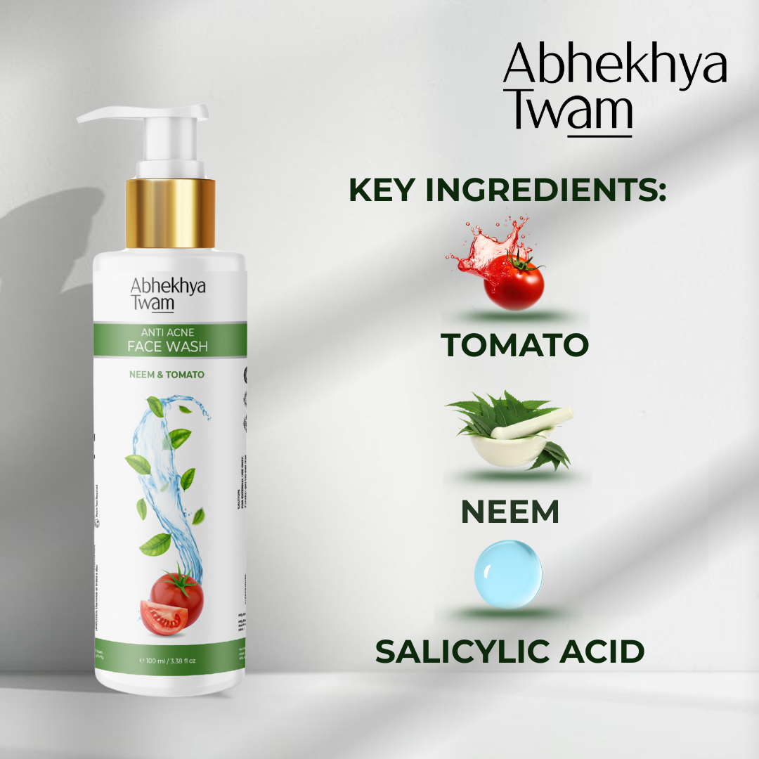 - Harnesses the anti-bacterial, anti-inflammatory, and antioxidant power of tomato and neem to fight acne and promote healing.