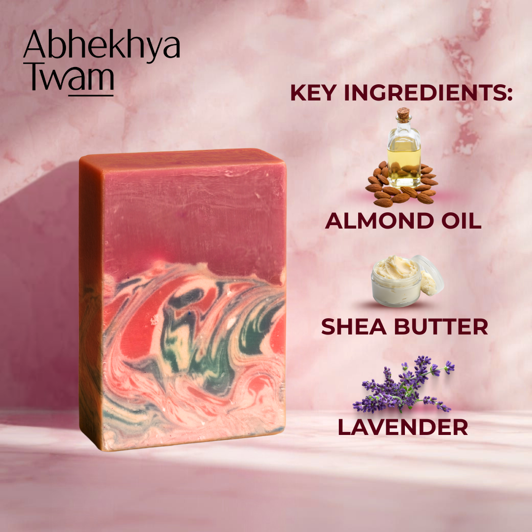 Almond Oil, Shea Butter, and Bergamot Essential Oil. This nourishing blend gently cleanses while