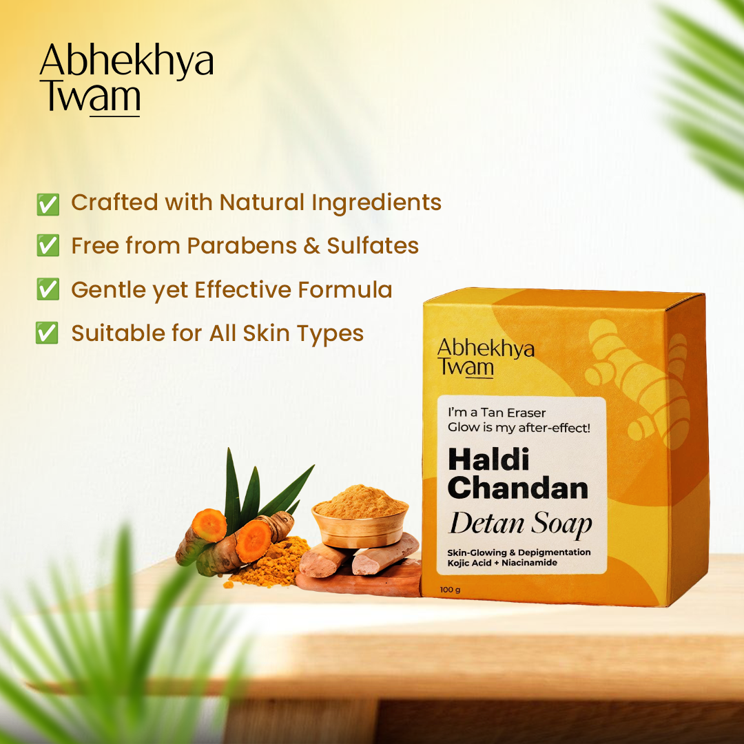 and Chandan (Sandalwood) in Abhekhya Twam’s Haldi Chandan Detan Soap.